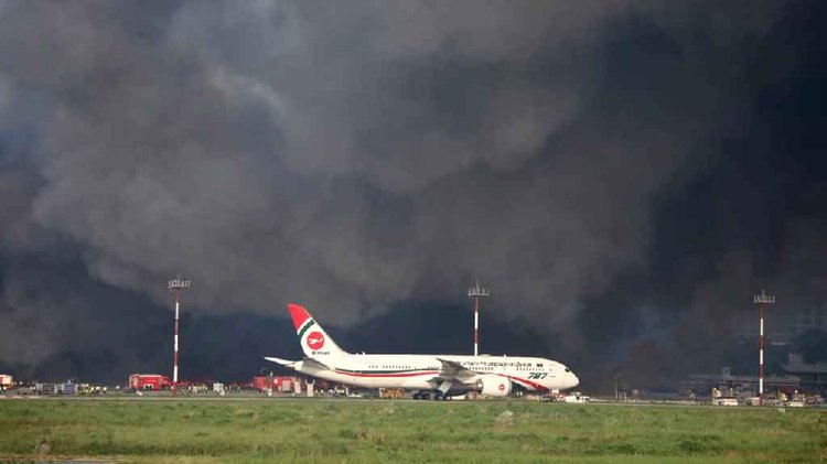 কালো ধোঁয়া কুণ্ডলী পাকিয়ে ঢেকে দিয়েছে হজরত শাহজালাল আন্তর্জাতিক বিমানবন্দরের আকাশ। আজ শনিবার (১৮ অক্টোবর) আনুমানিক দুপুরে অনেকেই দূর থেকে তা দেখেছেন। বিমানবন্দরের ৮ নং গেট সংলগ্ন আমদানী কার্গো ভিলেজ হাউজে শনিবার (১৮ অক্টোবর) দুপুর আড়াইটার দিকে আগুন লাগে। আগুন নিয়ন্ত্রণে ফায়ার সার্ভিসের ১৩টি স্টেশনের ৩৬টি ইউনিট কাজ করছে। এছাড়াও বিমানবন্দর বাহিনীর দমকল ইউনিট, ঢাকা ওয়াসার গাড়িও দেখা যায়।